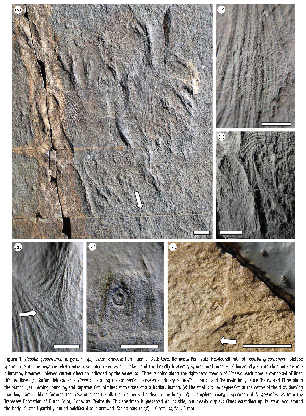 Le fossile « Haootia quadriformis », daté de 560 millions d'années, a été découvert en 2009 à Terre-Neuve au Canada. Les découvreurs, des chercheurs des universités de Cambridge, d'Oxford et Memorial, indiquent qu'il s'agit d'un cnidaire (un organisme similaire aux méduses et aux anémones de mer actuelles). Cet animal fossile complexe a conservé des fibres qui, selon les auteurs de la découverte, seraient des tissus musculaires. |